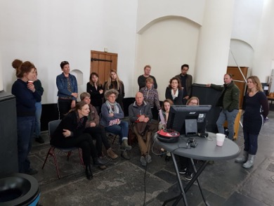 Dit werkbezoek toonde (opnieuw) aan hoe geïnteresseerd iedereen binnen het veld van muurschilderingen en historische binnenruimten is in elkaars projecten. Dit maakte het een heel nuttige (en gezellige) bijeenkomst, die bovendien is afgesloten met een borrel op de steiger (foto 6). Op naar de volgende!