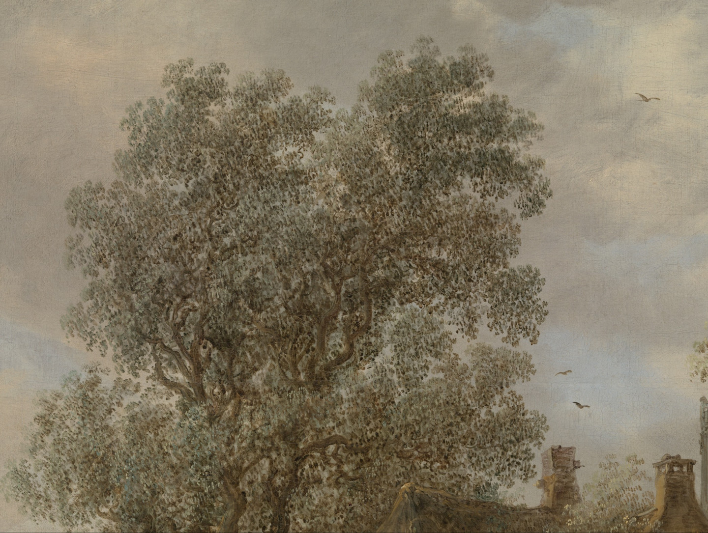 Two weeks ago Van Goyen’s painting popped up in my memory, when after a long and busy day, I finally climbed into bed. Various unrelated thoughts went through my mind, and suddenly I remembered that I had forgotten the name of the tree on Van Goyen’s painting. I found it very strange, as I thought of and talked about this tree often and always remembered its name. Although I was tired I decided to go through the letters of the alphabet, hoping to recognize the right one. Arriving at the letter Y none of them had rung any bells and I dozed off.