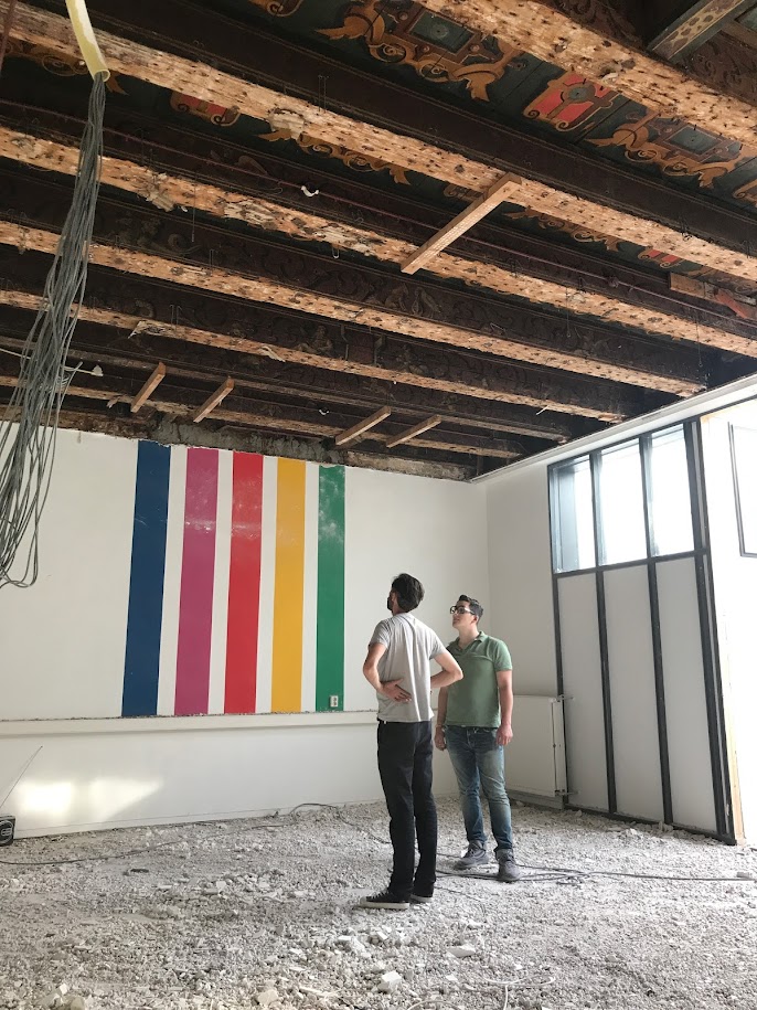 De pilates-studio About Moving van de familie Levin-Bosch op Keizersgracht 74 ís zo’n verrassing en een goed voorbeeld van hoe een imposant beschilderd balkenplafond van 400 jaar oud prachtig samengaat met een ruimte die verder gevuld is met zwarte fitnessapparatuur, felblauw gekleurde schuimen matjes en vooral heel veel licht. De aanwezigheid van het plafond is overal voelbaar, een kaart van honderden jaren geschiedenis die zich voor je uitvouwt terwijl je op een matje op de grond of op een toestel je oefeningen doet. Het unieke karakter ervan draagt bij aan de bijzondere sfeer van de studio en daarmee ongetwijfeld ook aan de ervaring en waardering van je work-out!