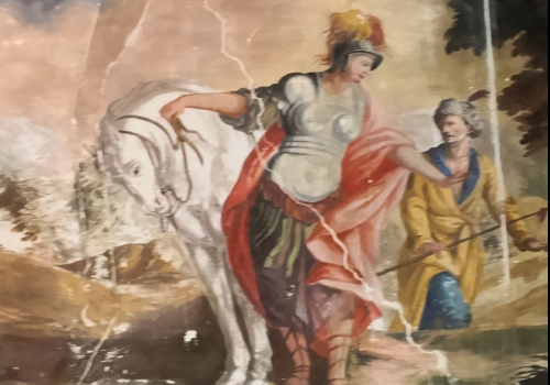 De studenten van het Palazzo Spinelli werken aan de muurschildering in een ruimte die later zal dienen als vergaderzaal. Het onderwerp is de bevrijding van Jeruzalem waarbij voor romantische scènes is gekozen. De bevrijding van Jeruzalem is een beroemd episch gedicht van Torquato Tasso uit 1575.