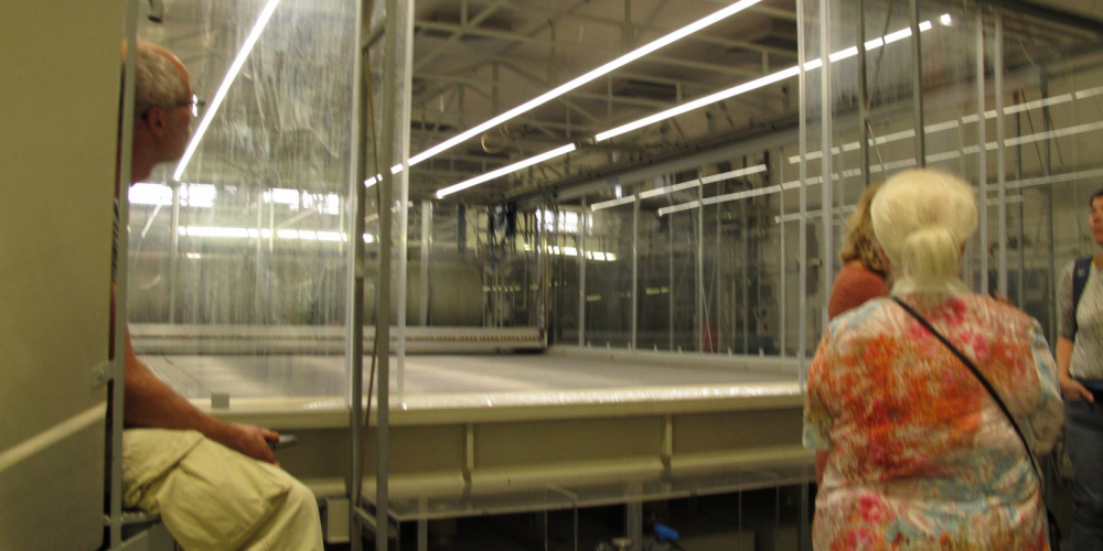 De tweede stap is dus dat het object ‘standaard’ wordt gewassen. Pier Terwen wilde weten wat het maximaal te bewerken oppervlak was. Het breedste bestaande tapijt is volgens Molina Pradel, de bedrijfsleider, 6 meter. De lengte telt niet echt, omdat het tapijt opgerold kan worden.