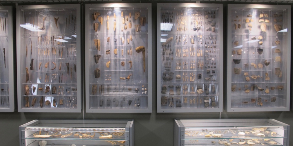 Een team van de Hermitage voert jaarlijks zo’n 25 archeologische expedities uit, in het gehele Russische rijk. Dat maakt dat de archeologische collectie dynamisch is en steeds uitbreidt met nieuwe vondsten. Op de afdeling keramiek en glas krijgen we een aardewerken kom uit de eerste eeuw te zien, die recent is gevonden in Siberië. Siberië is niet alleen maar koud, volgens de betrokken archeoloog/restaurator is het daar in de zomer overdag soms 35oC. Er kan daar dus prima gegraven worden. De delen van de kom zijn uitermate bros. Ze worden gestabiliseerd en gereconstrueerd met behulp van katoenen gaas en geconsolideerd met een synthetische polymeer. In de zichtdepots is een interessante afdeling gewijd aan de archeologische vondsten. Ze zijn in een glasheldere presentatie geordend, die ook de aardlagen waarin ze gevonden zijn representeert. (foto 9)