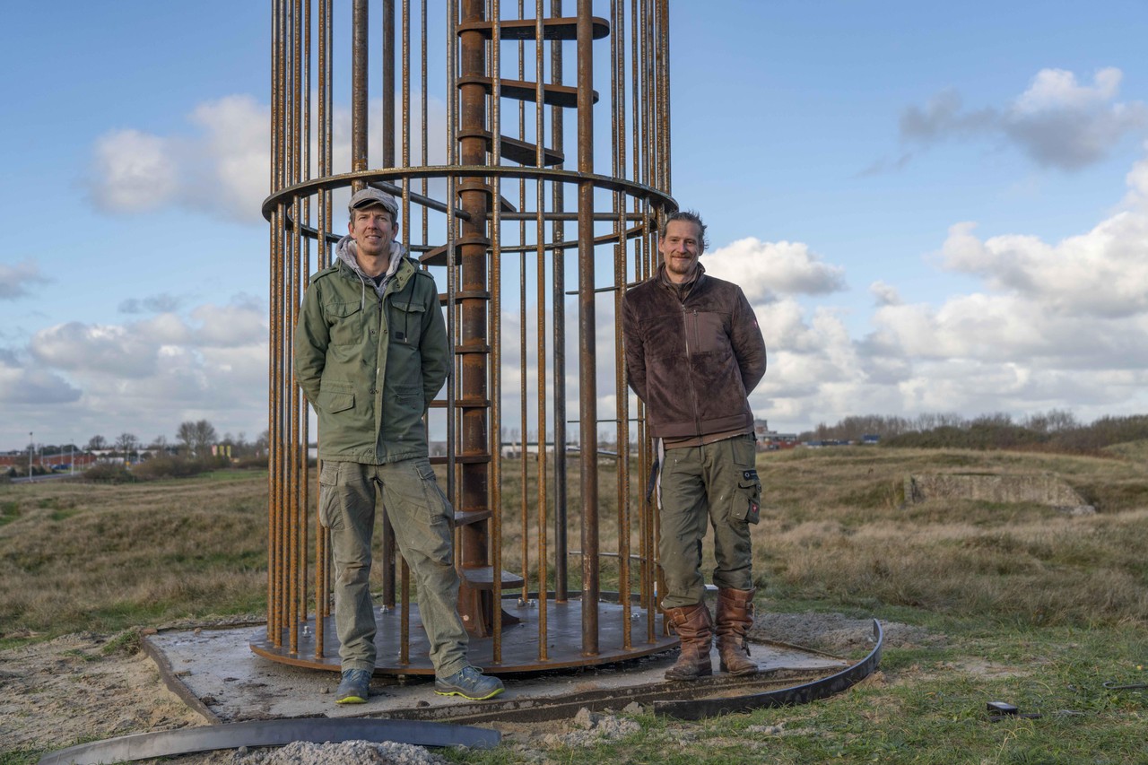 afb. 6 Gijs en Ruud van de Wint na de plaatsing van het nieuwe beeld. Foto: Redmouse, Noordhollandsdagblad