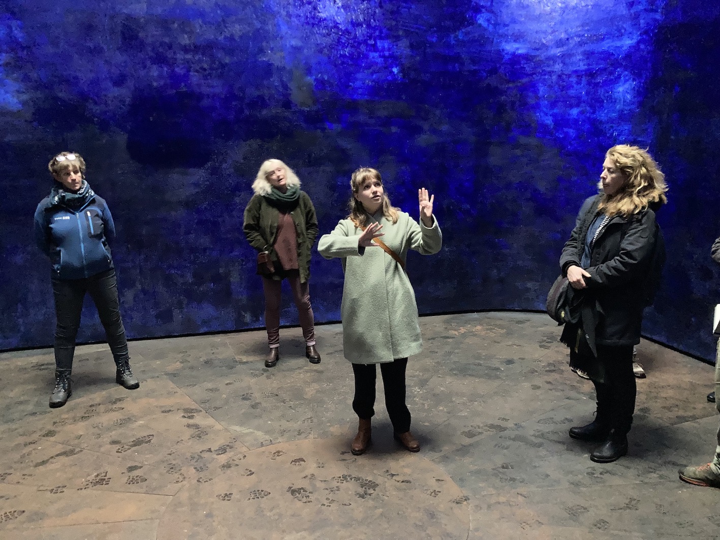 Tijdens de rondleiding werd uitgebreid stilgestaan bij het onderzoek en de pilot restauratie in Aether II. Hier vertelde Jasmijn Krol (Post-Master student Historisch Binnenruimten UvA) over het onderzoek en de pilot restauratie die werden uitgevoerd door de opleiding Conservering & Restauratie aan de Universiteit van Amsterdam onder leiding van Karin van der Lem (Restaurator Historische Binnenruimten). Aether II is gemaakt in de periode 1996-2006. De conditie van de verflaag was de laatste jaren sterk achteruitgegaan, er ontstond schimmel die zich snel ontwikkelde, er was een witte uitbloei zichtbaar en er vormde zich verschillende kleuren druppels op het oppervlak. Tijdens de pilot restauratie werden verschillende tests gedaan om de schimmelbloei zo goed mogelijk te verwijderen. Ook werd een vernis test opgezet om de juiste verzadiging terug te brengen.