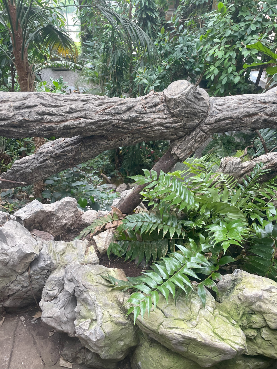 Cementrustiek in het vlinderpaviljoen