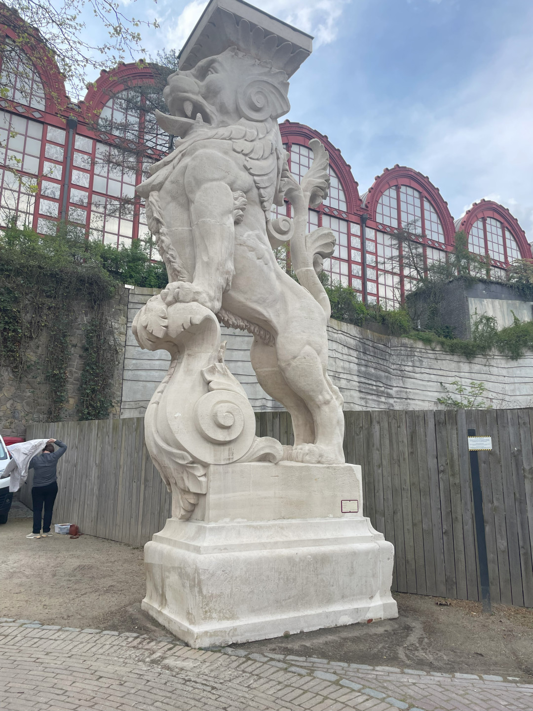 Na de rocaille van Dumilieu nam Lapis Arte ons mee naar vier enorme leeuwenbeelden (pal naast, het kan ook niet anders, het leeuwenverblijf). De leeuwen zijn enkele jaren geleden gerestaureerd. Lapis Arte is verantwoordelijk voor het schoonhouden van de beelden. Dit doen zij met enzymen. Viermaal per jaar spuiten zij de beelden in om algengroei tegen te gaan en eenmaal per jaar stoom reinigen zij de beelden om residuen te verwijderen. De vier beelden staan nu weer stralend naast de meerdere leeuwenfamilies die het park rijk is.