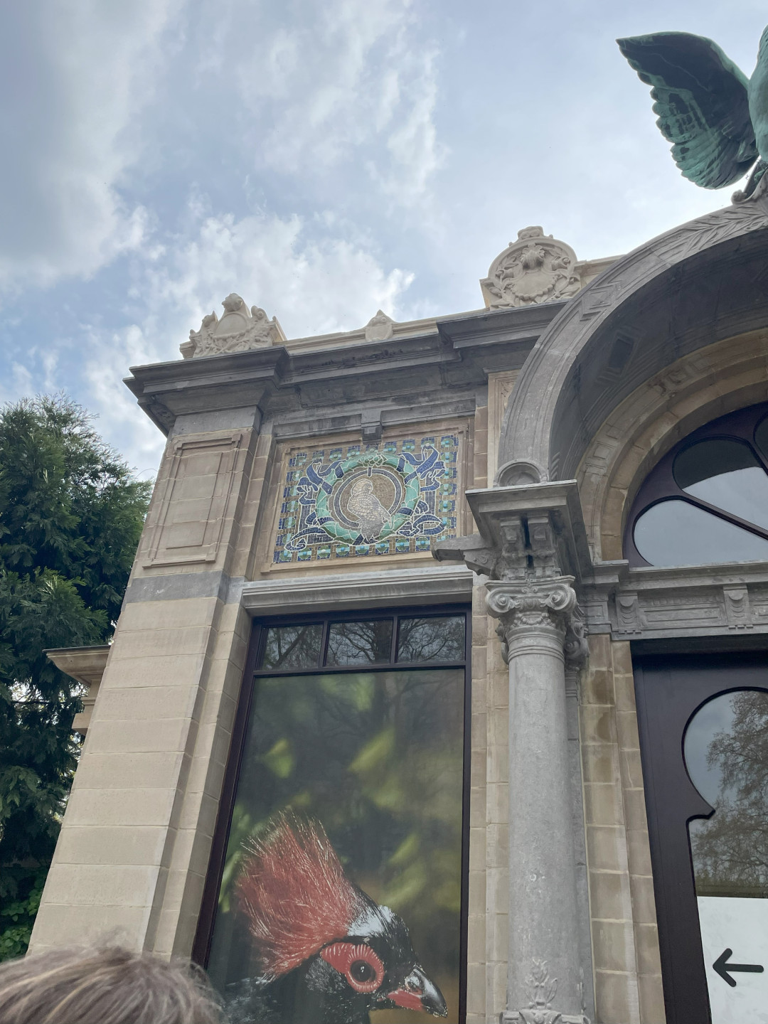 Tot slot namen we een kijkje bij het Vogelgebouw uit 1893. Dit verblijf, ontworpen door Emile Thielens voor ‘exotische vogels’ wordt gesierd door een mooie fin-de-siècle gevel met decoraties van Henri Verbuecken. Steenrestaurator Mikal Kindt lichtte de behandeling toe van de twee vlakglasmozaïeken aan weerszijden van de entree.