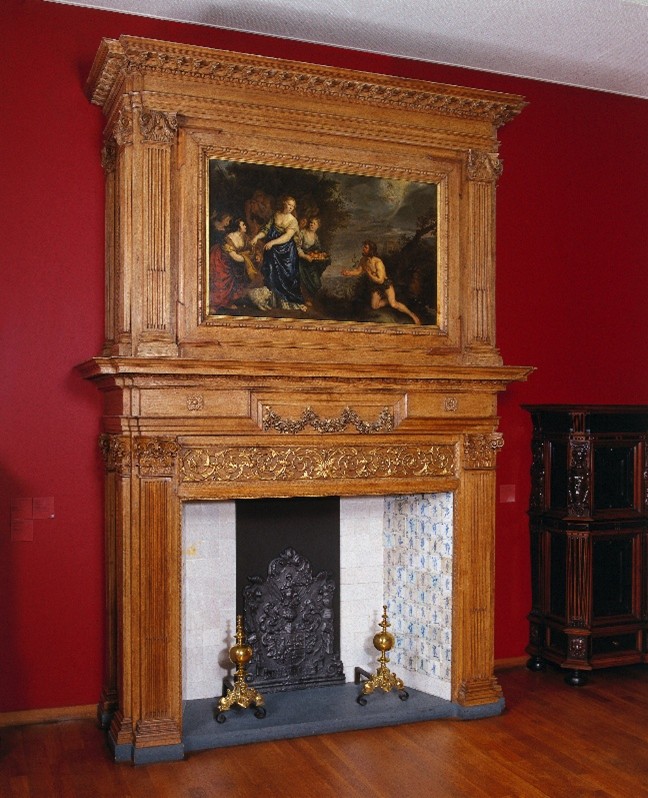 Een van de blikvangers is een imposante eikenhouten, klassiek vormgegeven schoorsteenmantel van meer dan vier meter hoog, met in het bovenste deel een schilderij. Dit indrukwekkende object komt uit het Singelhuis van Joan Huydecoper, gebouwd in 1639 naar een ontwerp van de beroemde architect Philip Vingboons. In 1895 werd de schoorsteenmantel opgenomen in de collectie van het museum. Tijdens de voorbereidingen op de restauratie en presentatie deden we verrassende ontdekkingen over het oorspronkelijke uiterlijk van het stuk.